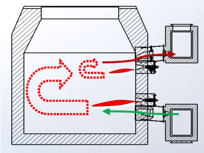 蓄热箱是蓄热燃烧的关键设备,直接影响最终的节能、运行稳定、使用寿命、超低NOx排放等多个指标,我们通过统一设计风口各段(炉墙短、连接段、蓄热箱段),增加清渣口、平球口、蓄热容积等办法,有效解决封口堵塞、不易清理、产生浓烟等问题,使设备在节能效率、运行稳定性、使用寿命及超低NOx排放等多方面具备优势。